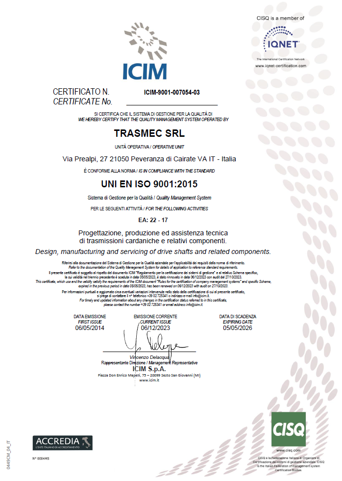 Politica per la QualitàCertificato ISONella storia più recente Trasmec si è affacciata nel mercato internazionale in particolare negli USA. Nell’essere un’azienda internazionale, Trasmec rimane tuttavia profondamente radicata alla sua tradizione “made in Italy”.